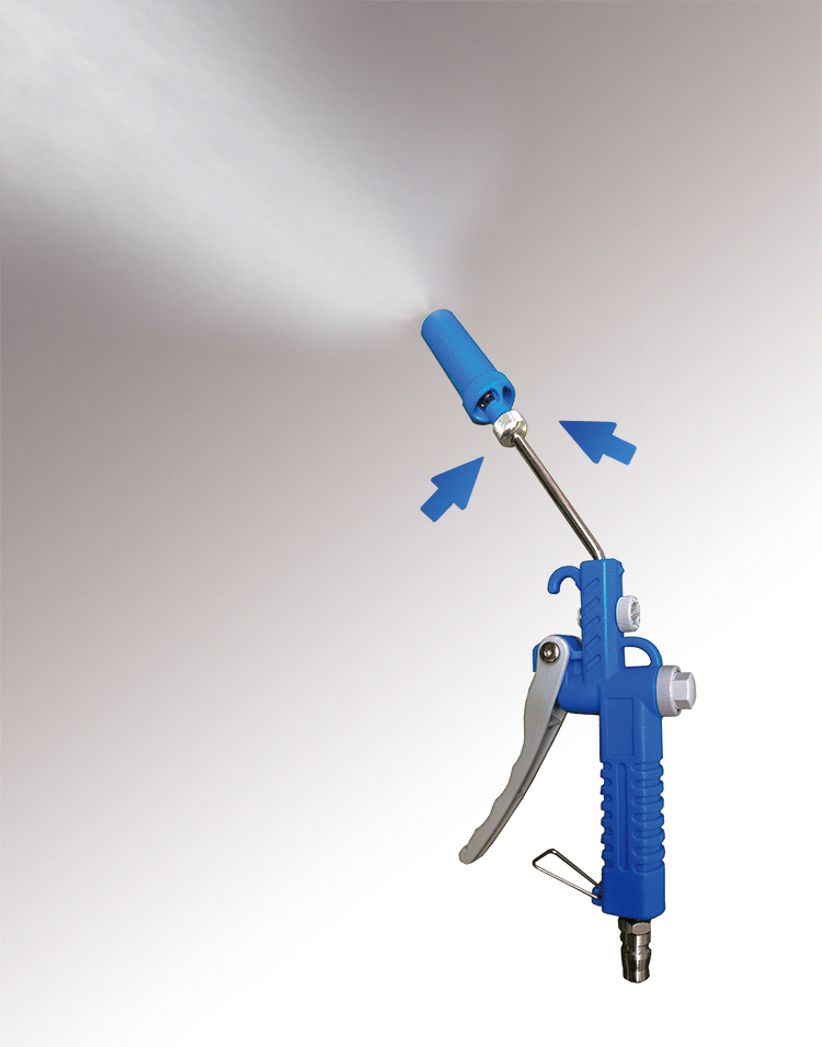 - 噴霧噴嘴滑至前端產生噴霧;滑回可當作風槍使用並且獲得多國專利