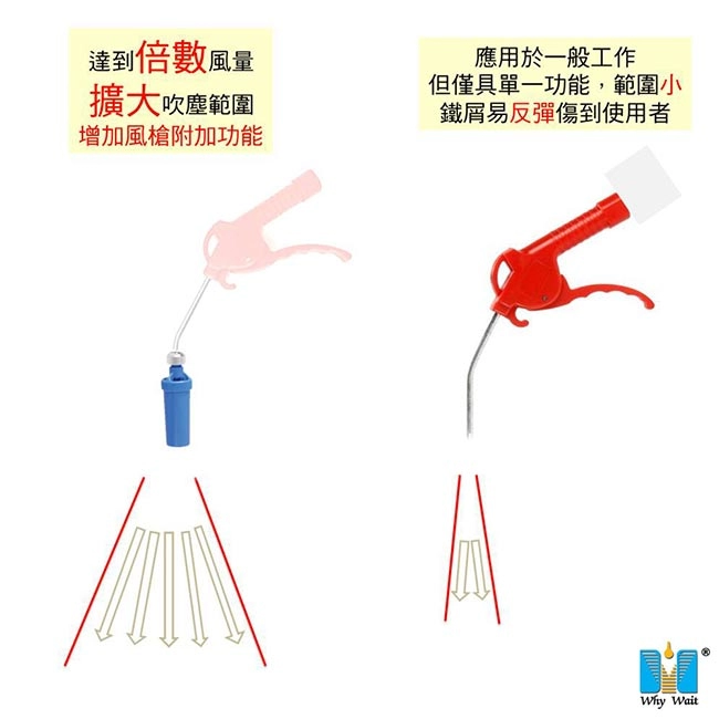 - 備註:因傳統風槍噴管雙彎角度,噴管前端長度短,故噴嘴不能自由滑動