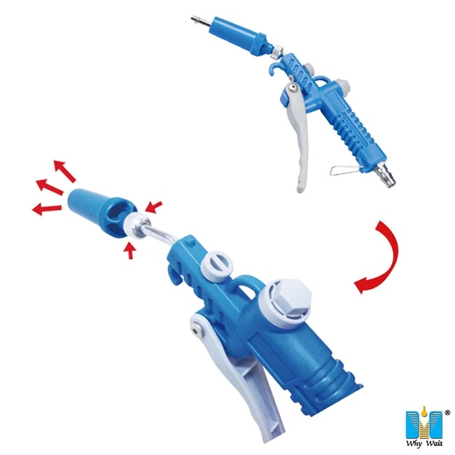- 前/後端彎或直噴管:滑動噴嘴到前端產生倍數風量或滑回使用原風量